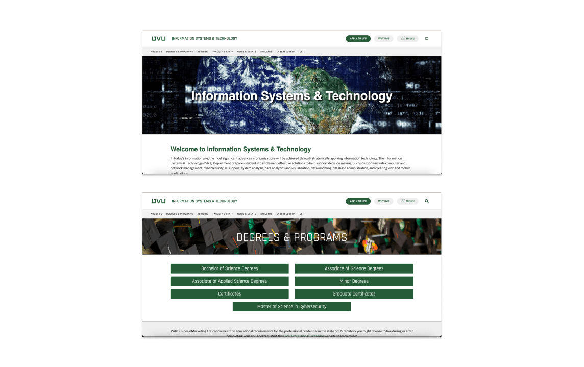 Before this project, this website was very hard for users to get valuable information from. The images and degrees pages were full of non applicable images, the navigation was bad and some of the information was just outdated.