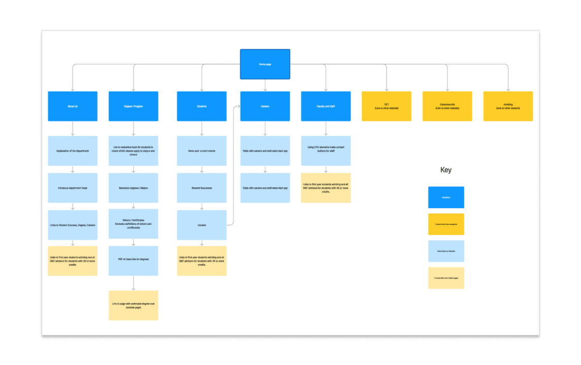After doing our user research our team came up with a sitemap that would become the skeleton for our website. This framework helped us while we went through our next stages because we knew which content to include in the future.